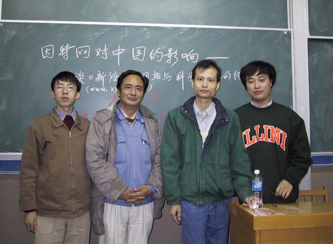 演讲结束后与《中华读书报》记者王洪波、清华大学自动化系教授赵南元和北京大学哲学系副教授刘华杰合影