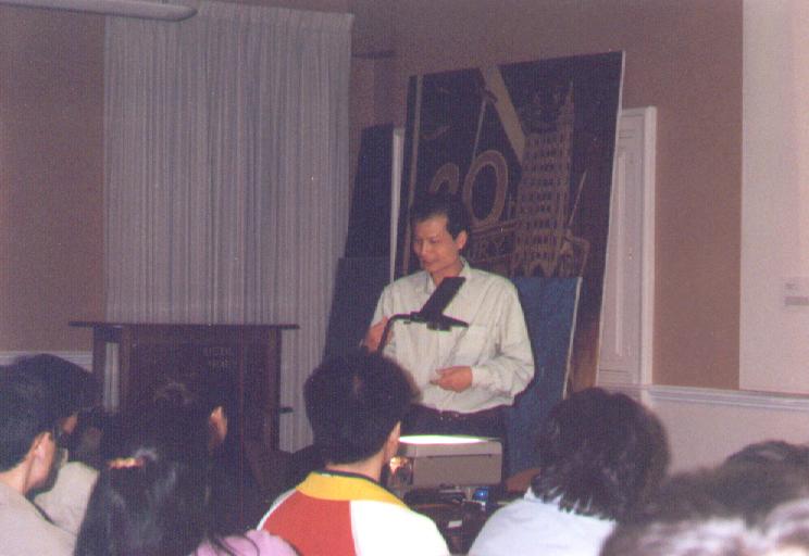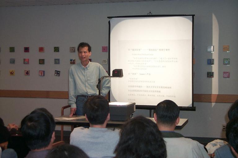8/2, 2001年4月20日方舟子在哈佛大学做“面对中国科学的敌人”演讲的照片