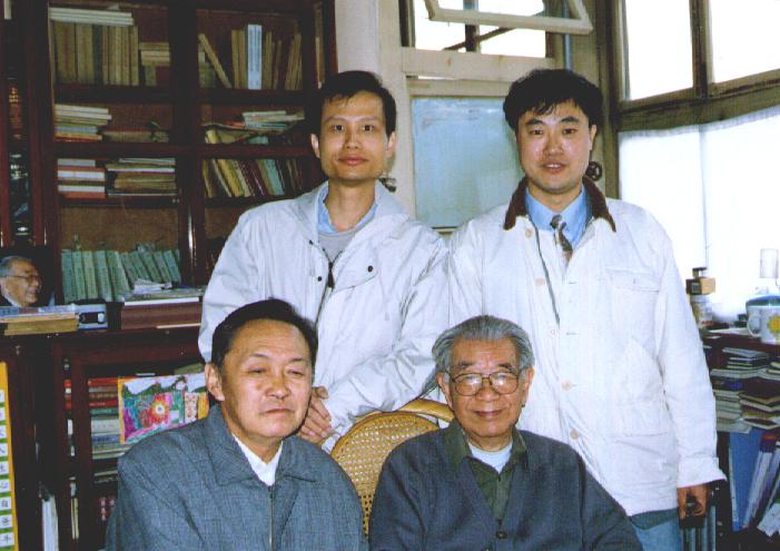 在于光远家中与于光远(前排右)、郭正谊、刘华杰(后排右)合影