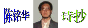 〖陈铭华,一九五六年出生于越南嘉定,一九七九年定居洛杉矶。一九九零年创 办《新大陆》诗刊,兼任主编。著有诗集《河传》、《春天的游戏》、《童话世 界》等。〗 九一八事变 九月十八日。华氏95度 冰块开始流泪之前 我又在制造她的机器前 见到了中村铁丽 (想不出一句话话) 她的名字入了籍,姓氏尚未 她的眼睛染着甲午的云彩 她的秀发奔着钓鱼台的波浪 她的剌青啊,栩栩然 我的前生。打从鸭绿江那头 经芦沟桥,经雨花台 她默默将勺子递过来 冷冷的小手 我猜 她朝梦里去 而我,从历史来 九六年九月十八日洛城 星期一早上的会议室 星期一早上的会议室 灯光迟疑地将握笔的手 复制成一只 在线路上觅食的 鸟脚步比风还轻 窗色暗暗入路纷纷 卡车满载着时间 缓缓从出路那头的 铁栏杆 绕过一方屋脊 很绿很绿的乒乓球桌 球赛正进行着 飞来飞去 飞去飞来 咦 这些球 全是我的同僚 九六年二月十九日 啤酒广告 如今我安详地睡去 除了须发 遍体透明 阳光仍然哗哗下着 海呵 请葬我以沙 在玻璃瓶内 一首诗完成的时候 一扇没有匙孔的门 要等的是那一双手 温柔地扭开 好让我流过 一转 百转 柔肠 九六年八月廿二日洛城 Sensor 让我在前院种几丛花探四时的消长 让我在后院蓄一池水测日月的盈亏 让我在实验室出尽方法来量度 冷暖、厚薄以及爱恨等等 最后请将我接上高压电流 装置在莽莽天地间 俯仰一生 九七年一月廿日洛城 (寄自美国)